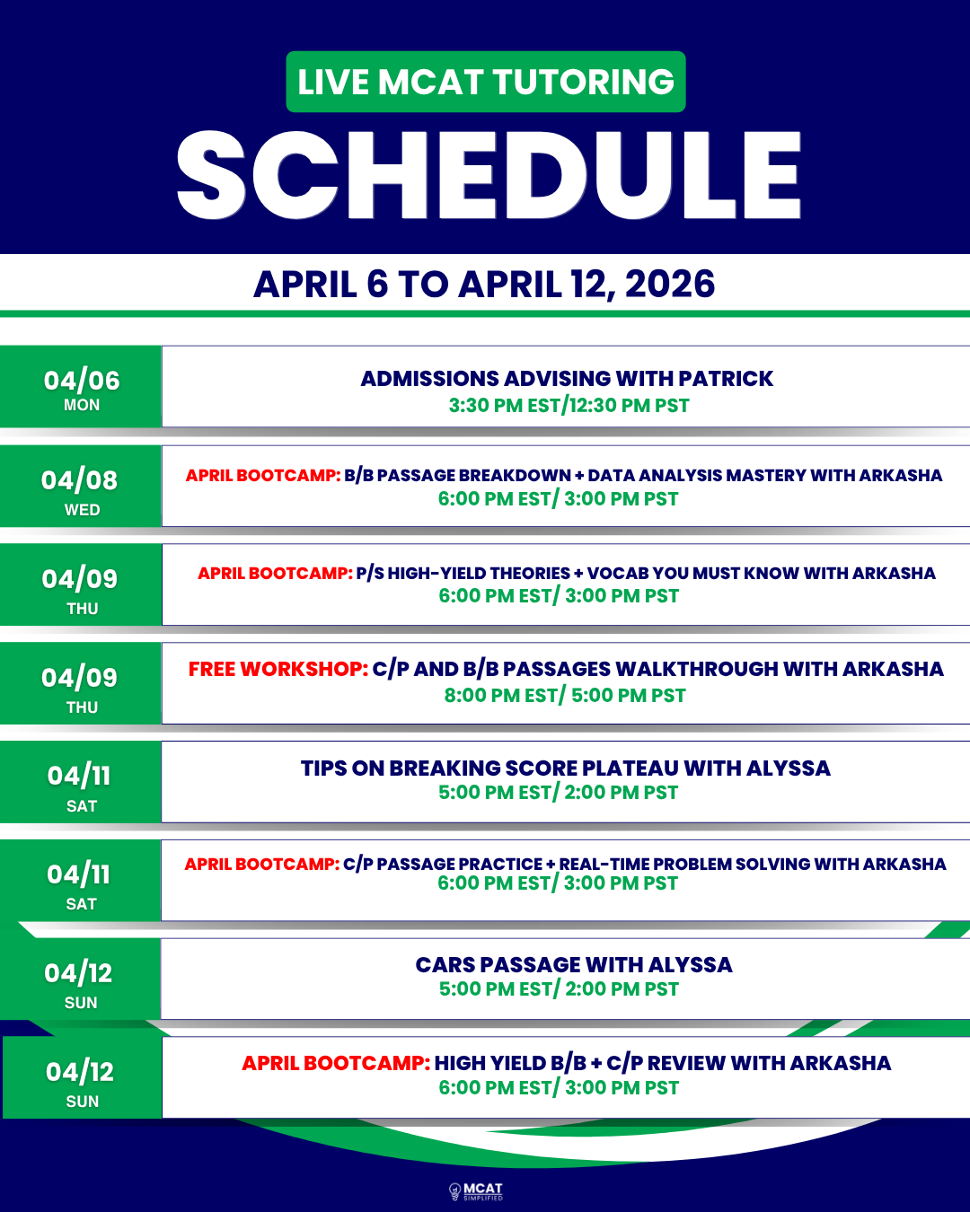 • All sessions available through our MCAT Simplified student community