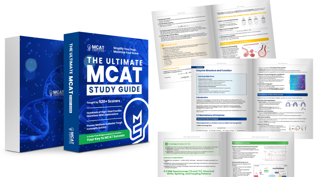 Designed and taught by 520+ scorers, this all-in-one guide is the same book our students use inside the 516+ MCAT course. Each chapter matches our lecture videos, so when you watch a lesson, you’ll see the exact visuals and examples our instructors are teaching — no guessing, no mismatches, just seamless learning.