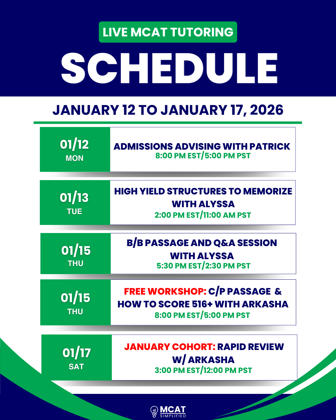 • All sessions available through our MCAT Simplified student community